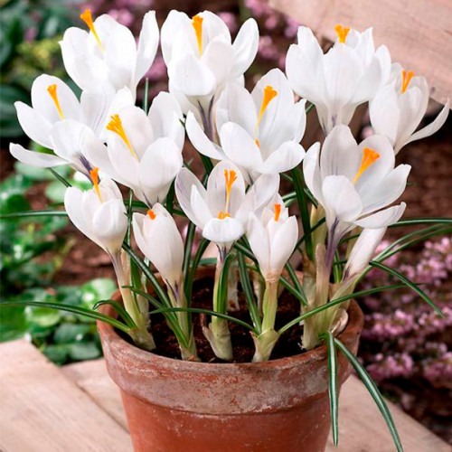 Крокус Великоквітковий Жанна Дарк - це вид весняних крокусів найбільш відомий і поширений. Вони утворюють окрему групу, яку тепер так і називають крупноквіткові крокуси. Всі рослини цієї групи крупніші, ніж сорти групи Крокус Ботанічний, і цвітіння крупноквіткових крокусів наступає пізніше. Квітки бувають різного забарвлення і відтінків: починаючи від білгої і жовтого і закінчуючи світло-лілового і темно-фіолетового кольлру. Квітнутть ці крокуси десь на 7-10 днів пізніше ботанічних, їх цвітіння припадає на другу декаду квітня.