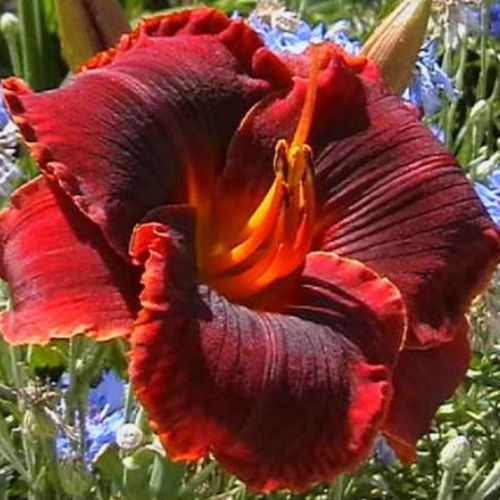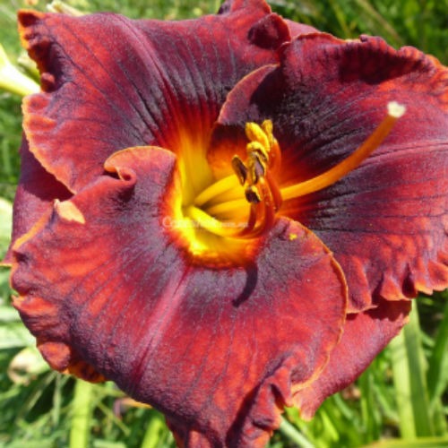 Лілійник Mahogany Magic виведений P. Stamile в 1994 році. Квітка досягає діаметра 10 см, складається з дуже широких округлих пелюсток, кінці яких відігнуті далеко назад. Основне забарвлення темно-вишневе або каштаново-червоне, яка згущується в майже чорний колір в зеві, підкреслена оранжево-жовтим кольором тичіночних ниток і горлом. Текстура квітки оксамитова, краї пелюсток гофровані. Рослина середньоросла, в квітучому стані досягає розмірів 55 см. Цвітіння тривале, середньоранне, починається в липні, суцвіття розпускається відразу букетом. Сорт відноситься до групи тетраплоідних лілійників. Кущ проявляє властивості напіввічнозелених багаторічників.