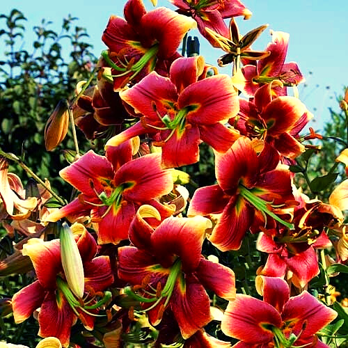 Висока лілія ОТ-гібрид "Debby" має яскраво-жовте, золотисте забарвлення з серединою пелюстки винного кольору і крапчастою підставою. Аромат лілій яскравий, розноситься по всьому саду і дуже приємний. ОТ-гібриди настільки високі, що їх називають лілії-дерева, і розпускається на них одночасно до 30 квіток.