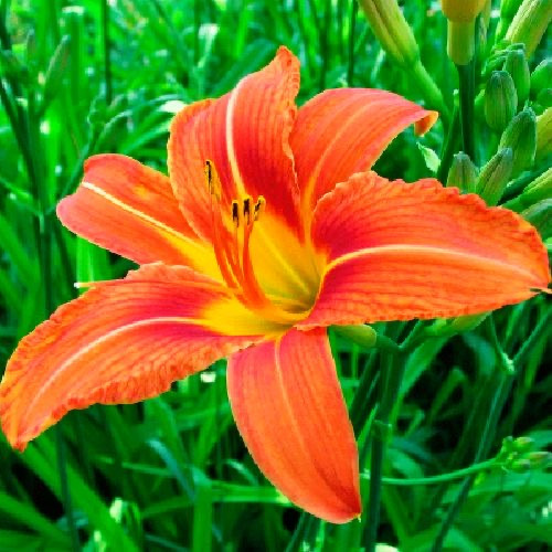 Помаранчевий лілійник відноситься до невибагливих рослин, яким не потрібний особливий догляд. Він невимогливий до поливу та складу ґрунту, його необов'язково вкривати на холодний сезон. Лілейник має шнуроподібне, зазвичай широке і соковите коріння, що відходить від стебла, що допомагає культурі пережити дуже спекотний час. Листя біля коріння широке, має пряму або вигнуту форму. Квіти у вигляді вирви, переважно оранжевого кольору. Кошик утворюється з кількох квіток, одночасно розпускається до трьох штук, час цвітіння триває до 19 днів. Кущ складається з одного або кількох суцвіть. Плід лілійника – коробочка з трьома гранями, усередині неї знаходиться насіння.