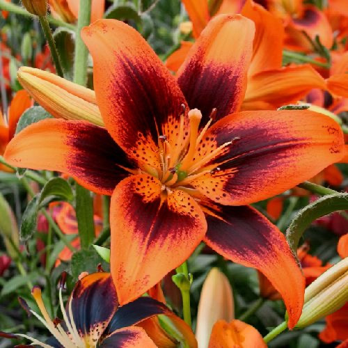 - колір квіток: насичений помаранчевий із темно-бордовими плямами;