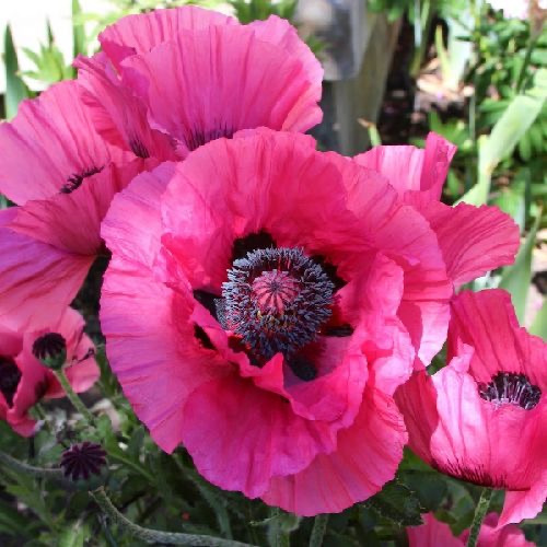 - квітка яскраво-рожева, центр майже чорний, розмір чашоподібного суцвіття 12-17 см;