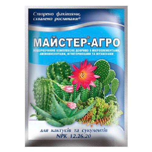 Призначення: для кореневого підживлення всіх видів кактусів та сукулентів.