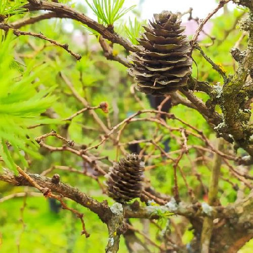 Гілки спочатку ростуть горизонтально, а потім вгору, і це виглядає так ніби в модрини є декілька піків.