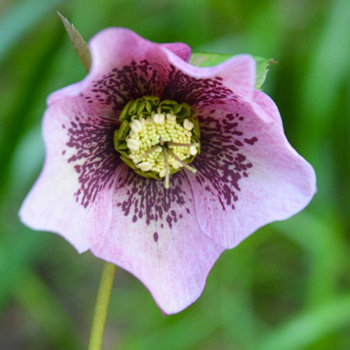 Морозник Pink Spotted Lady - вічнозелений багаторічник. Висота рослини 20-30 см. Висота квітконосів 30-50 см. Листки темно-зелені, зимуючі, дуже щільні, шкірясті, вони добре виглядають при цвітінні, а потім відмирають, замінюючись новими. Квітки дуже великі, ошатні. Забарвлення квіток білосніжне з червоними цяточками. Якщо морозник випустив квітконіс, а тут повернулися заморозки, це йому не страшно. Він просто опускає свій квітконіс на землю, і в такому стані чекає потепління. Як тільки промінчик сонця доторкнеться до нього, квітконоси тут же піднімаються вгору і квітки розпускаються. Цвітіння, в залежності від погоди, з лютого по травень. Цвіте тривало. Віддає перевагу півтіні під кронами дерев, або світлій ділянці, з розсіяним сонячним світлом.