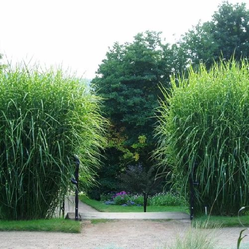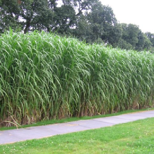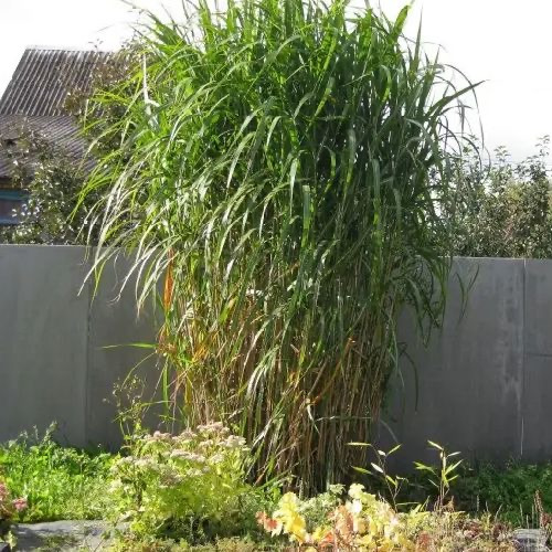 Сильнорослий злаковий чагарник з великими декоративними мітелками. Міскантус гігантський відмінно підходить для змішаних композицій, не вибагливий до ґрунтів. Застосування міскантуса досить широке, росте біля водойм, на клумбах як зелена огорожа. Саджанці висаджують на захищених ділянках від протягів.