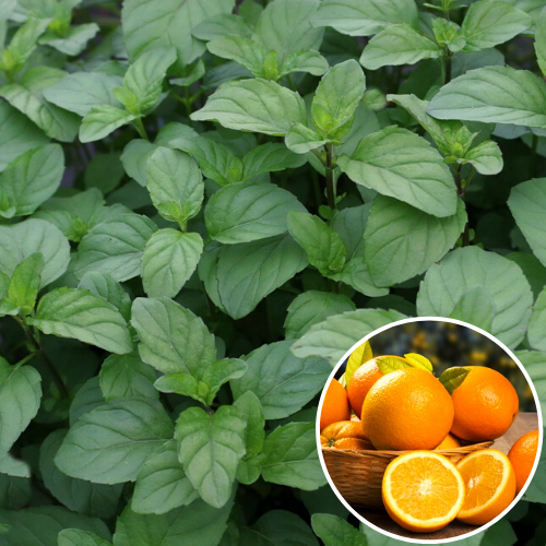 М'ята цього виду відрізняється насиченим цитрусовим ароматом і низьким вмістом ментолу. Листочки апельсинової м'яти представлені округлою формою, світло-зеленою колірною гамою з легким червонуватим відтінком. Рослина найчастіше застосовується для приготування фруктових коктейлів і різноманітних десертів.