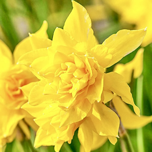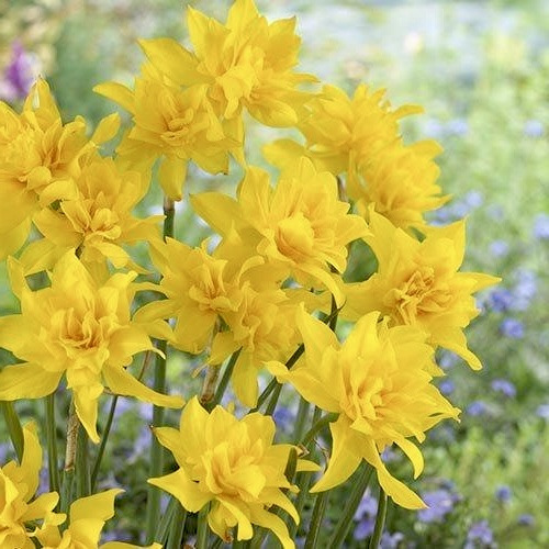 Нарцис Campernellen Double – вишуканий садовий сорт із розкішними півонієподібними квітками насиченого золотисто-жовтого кольору. Кожен пагін утворює кілька пишних бутонів із махровою короною та острими кінчиками пелюсток, що надає квітці особливої виразності. Стебла міцні, заввишки близько 30 см, чудово підходять для зрізання. Листя яскраво-зелене, зберігає декоративність протягом усього сезону.