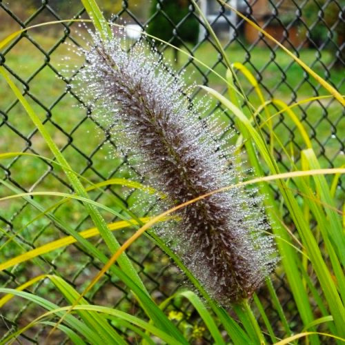 Над гарним листям з серпня по листопад височать колоски довжиною близько 5-10 см і шириною 2-3 см. У них досить незвичайний, фіолетовий колір. Колоски розташовуються на кінцях прямих або дугоподібних стебел. У перебігу цвітіння суцвіття змінюють забарвлення від фіолетового до сріблястого. І не втрачають своєї привабливості навіть узимку.