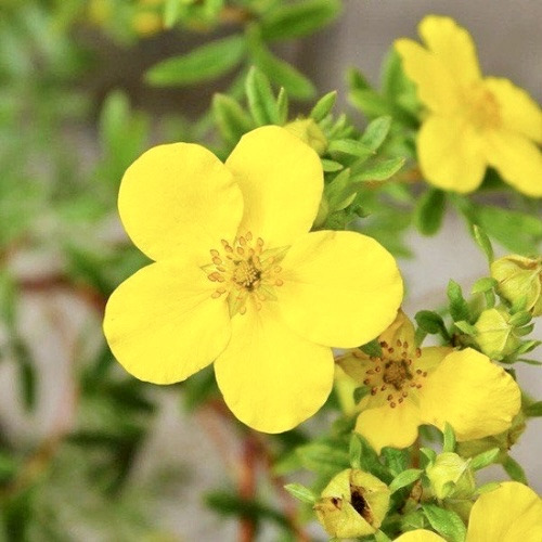 Перстач кущовий Goldfinger — це один з найвиразніших сортів у родині перстачів, який привертає увагу своєю великою яскраво-жовтою колористикою та тривалим періодом цвітіння. Цей сорт відзначається швидким зростанням і охайною, майже кулястою кроною. Висота дорослого куща досягає 1 метра, а його діаметр може перевищувати 1,2 метра, що робить його чудовим вибором для створення живих огорож, бордюрів або альпінаріїв.