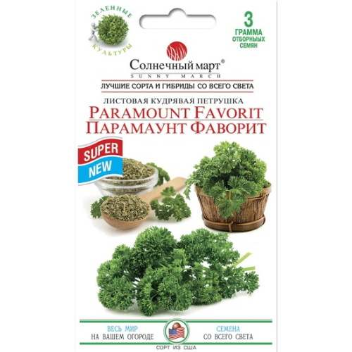 Покращений різновид сорту Парамаунт з тонко скрученим темно-зеленим листям (тип Moss Curled, згорнутий мох), що має яскравий, тонкий аромат петрушки, який ідеально підходить для свіжих гарнірів і сушіння. Рослини досягають 13 дюймів (33 см) у висоту і мають міцні черешки, які підтримують листя високо над землею. Ранньостиглий сорт зі швидким відростанням після зрізання, який легко зимує і повільно зацвітає на другий рік.