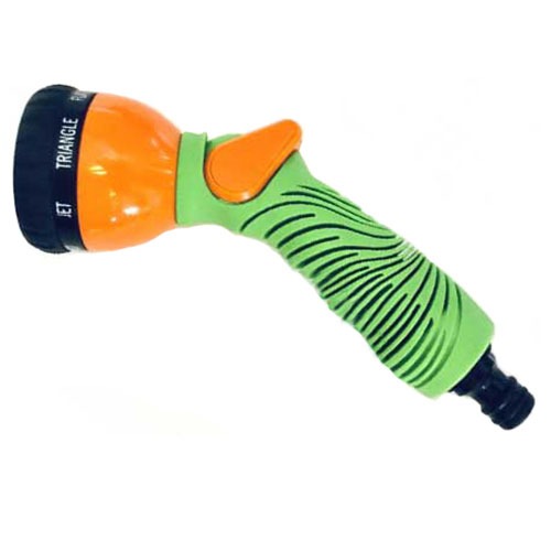 Пістолет поливальний металевий має 8 функцій розпилення: mist - туман, jet - струмінь, triangle-трикутник, flat - вузький, cone - конус, center - центр, shower - душ, soaker - злива.