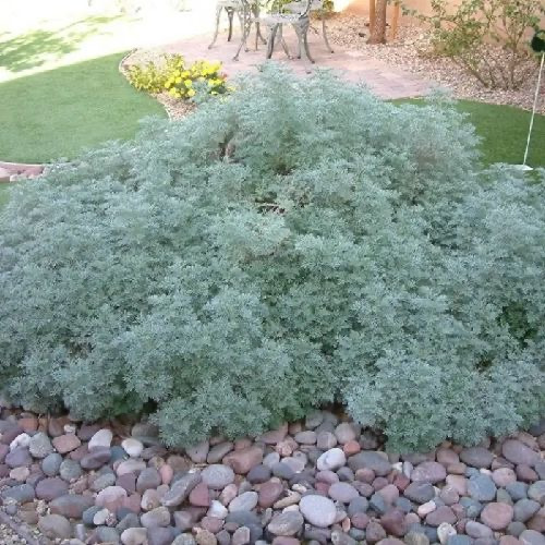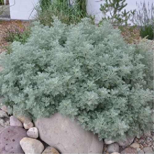Полин декоративний "Повіс Кастл" Powis Castle це гібридний сорт за участю полину деревовидною висотою до 40 см. Рослина з сріблястими декоративними, перисто-розсіченими та ажурними листами. Цвіте у липні - серпні жовтими непоказними квітками, зібраними в пензлі. Зберігає декоративне листя до морозів.