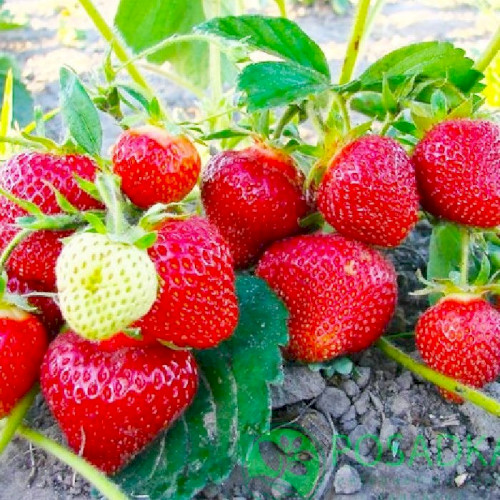 Має потужний, добре сформований кущ із середньою густиною листя, ягоди розташовуються трохи вище листя. Плоди дуже гарні, ідеальної конічної форми, темно-червоного кольору, з глянцевою поверхнею, окрема ягідка важить 26-32 г. М'якоть щільна, соковита, м'ясиста, червоного кольору. На смак полуниця солодка, ароматна з мускатним присмаком. Ця полуниця володіє гарною транспортабельністю, ягоди не течуть і не давляться.