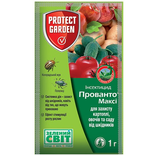 Малотоксичний інсектицид Прованто Максі. Препарат є інсектицидом системної і контактної дії. Він використовується аграріями та садівниками для тривалого захисту овочевих і плодових культур від широкого спектру шкідників. У процесі розкладання Прованто Максі утворюється речовина, яка структурно схожа на природний укріплювач імунітету і підсилювач росту рослин, що сприяє фізіологічним змінам в рослинах і призводить до підвищення інтенсивності їх росту. Ідеально підходить для внесення з крапельним зрошенням, завдяки вираженому впливу на коріння рослин. Завдяки чому рослини стають більш стійкими до впливу несприятливих факторів навколишнього середовища.