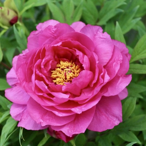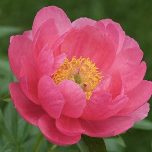 Кущ півонії "Cytherea" досягає висоти 60-65 см і має компактну, стійку форму. Її напівмахрові квіти діаметром до 16 см привертають увагу насиченим рожевим забарвленням пелюсток, які обрамляють серединку, прикрашену золотистими тичинками. Цвітіння півонії розпочинається у середині травня і триває близько двох-трьох тижнів. Протягом цього періоду квіти змінюють відтінок, переходячи від яскраво-рожевого до червоно-коралового, а потім до ніжного лососево-персикового кольору. Одночасно на кущі можуть цвісти бутони різних відтінків, що створює особливо захоплюючий ефект у саду.