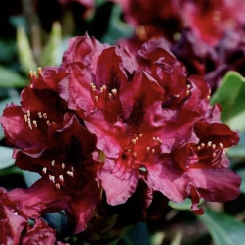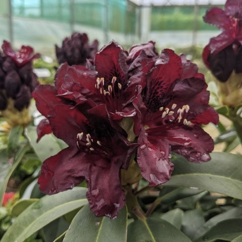 Рододендрон Kali — це гібридний сорт, який вражає своїм вишуканим зовнішнім виглядом і насиченим темно-бордовим забарвленням квітів. Цей рясноквітучий вічнозелений кущ стане справжньою окрасою вашого саду, привертаючи увагу не тільки в період цвітіння, але й протягом усього року завдяки своїй щільній, глянцевій листі.