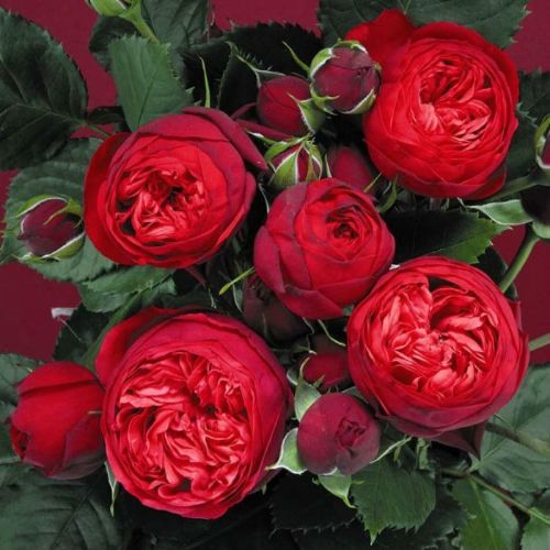 Роза англійська "Red Piano" - це кущова троянда з розкішними махровими квітками. Кущ компактний, виростає до 120 см, в ширину 60-70 см. Пагони товсті, соковиті, не схильні до пригибании. Листя яскраво зелене, з характерним глянсовим блиском. Яскраві криваво червоні півонієвидні квітки складаються з численних пелюсток, щільно і густо набиває бутон. В одній трояндочки налічується не менше 100 пелюсток. Махрові квітки зібрані в суцвіття по 3-8 шт. Діаметр квітки 8-11 см. Англійська троянда Ред піано повторно квітуча. Процес цвітіння триває з червня і до пізньої осені.