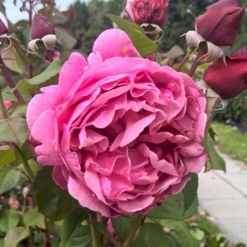 квітки (13см) темно-рожевого кольору нагадують за формою півонію, складаються з 50-55 пелюсток, на прямих пагонах - в основному поодинокі. Висота куща 80-150 см. Листя з сіро-зеленим відтінком. Аромат з нотками лимона і фруктів, дивовижна стійкість до захворювань роблять цю троянду однією з найпопулярніших. Цей сорт отримав 8 нагород, одна з яких - ADR (Allgmemeine Deutsche Rosenneuheitenprufung). Не вигоряє на сонці, добре витримує дощ і вітер.