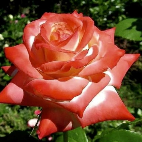 Як і жінка, на честь якої було названо цю квітку, так і сама троянда, володіють особливим шармом і винятковістю. Елегантність троянди полягає в двоколірності і переході від білого до яскраво-червоного кольору: пелюстки троянди Імператриці Фарах закручені в класичний високий келих, таким чином, що назовні відгинаються тільки пофарбовані карміном кінчики пелюсток. Довге і повторне цвітіння не може не порадувати справжніх цінителів краси. Чим більше троянда сорту Імператриця Фарах буде отримувати сонячного світла, тим сильніше буде проявлятися її такий неоднозначний і двоколірний вид. Квітки цієї троянди досить великі, до 13 см, плавно розпускаються. Аромат у цієї троянди тонкий і ледь відчувається, але це з лишком компенсується високим контрастом і поєднанням кольорів бутона.