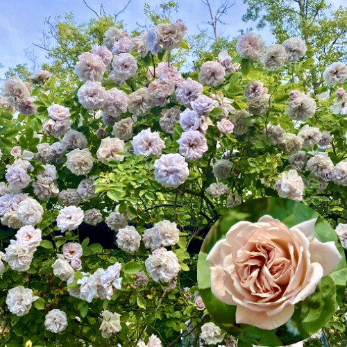 Квіти кремово-кавові з легким лавандовим відтінком, чашоподібні, з високим центром, махрові, діаметром 10-11 см, має приємний аромат, стійкі до дощу. Цвітіння дуже багате, одноразове, квітки зібрані в суцвіття по 3-15 шт. Кущ густий, широкий заввишки 300-500 см, шириною до 200 см. Лист зелений, середній, напівглянсовий. Стійкість до захворювань висока, морозостійкий сорт.