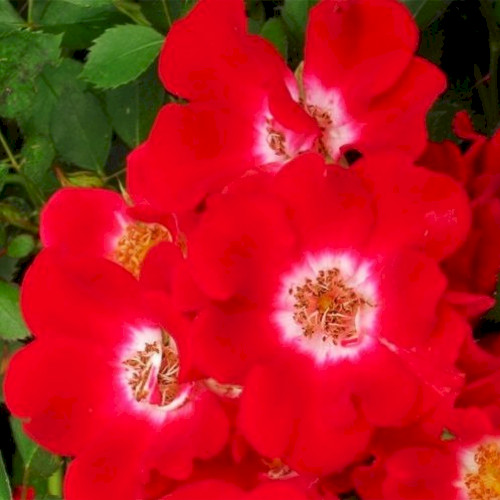 Rouge Meillandecor один з найкращих сучасних шрабів з оригінальною яскраво-червоною, простою, п'яти пелюстковою квіткою. Квітки чашоподібні, досить великі 6-7 см в діаметрі, тішать око своїми яскравими атласними з білою основою пелюстками, що обрамляють жовті тичинки. Цвіте дуже рясно, квітки з'являються у суцвіттях до 15 квіток у кисті та покривають весь кущ. Проміжок між хвилями цвітіння дуже невеликий. Восени весь кущ покритий червоними плодами, які теж дуже прикрашають троянду. Аромат легкий. Кущ заввишки 90-100 см, шириною 200 см, густий, округлий. За своєю структурою цей сорт можна вважати ґрунтопокривною трояндою.