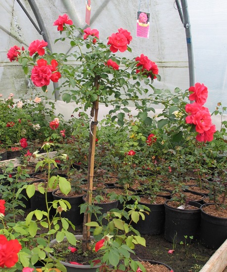 Штамбова троянда Соренто – розкішний каскад махрових яскравих кольорів. Червоні пелюстки, що обсипаються, які розносить вітер, навколо пишно квітучої троянди - видовище прекрасне.