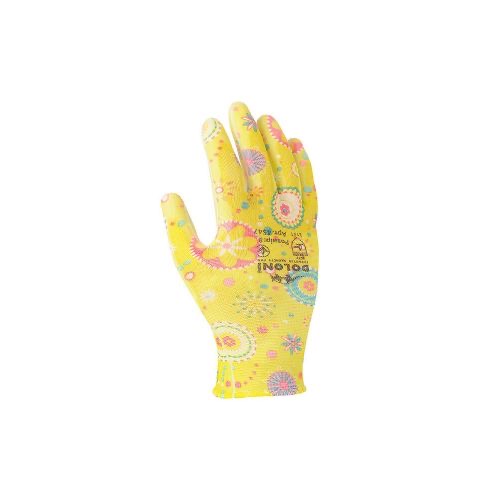 Особливості: Трикотажні безшовні рукавички, виконані з поліестеру з яскравим дизайном. Робоча сторона долоні і пальці покриті тонким шаром поліуретану. Відрізняються високою стійкістю до стирання і розривів. Використовуються при загальних механічних роботах, особливо тих, де потрібна точність і чутливість.