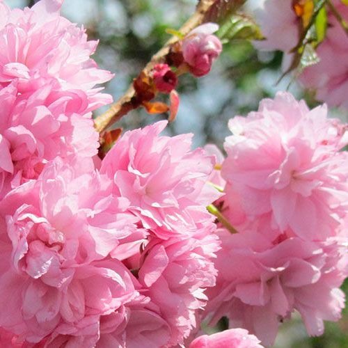 Цвітіння: Махрові, ароматні, рожеві квітки, діаметром 5 см., На довгих квітконіжках, зібрані в густі суцвіття, розташовані уздовж всієї довжини гілок. Цвіте в травні.