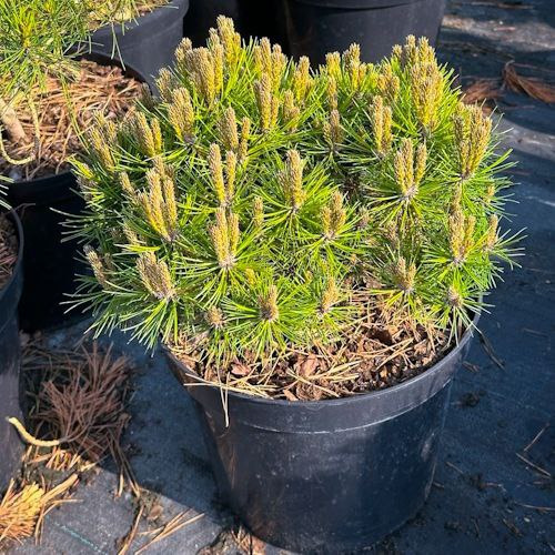 Сосна чорна "Бамбіно" - карликова сосна з кулястою кроною, з жорсткими короткими щільно розташованими пагонами, з віком розростається переважно в ширину.
