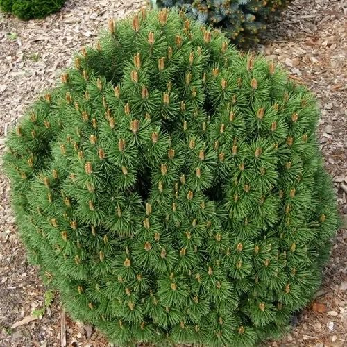 Повільно зростаючий сорт, до 10-ти років висота і діаметр 40-50 см. У молодості форма сферична, пізніше овально-конічна. Крона густа компактна, всі пагони прямостоячі. Річний приріст 3-5 см. Хвоя темно-зелена, колючий, дуже щільна, довжиною 3-5 см, по 2 в пучках. Місце сонячне. До грунту невимоглива. Зона 4 (до -29ºС).