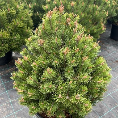 Сосна гірська "Мопс" карликовий кулястий кущ, щільний, компактний. Крона яйцеподібна або широкопірамідальна.