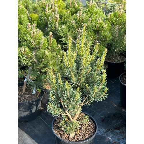 Сосна звичайна "Watereri" – це карликове дерево з компактною, густою кроною, що з віком набуває округло-конічної або кулястої форми. Її висота в зрілому віці може сягати 2-4 метрів, а діаметр – до 4 метрів, при цьому у 10-річному віці рослина досягає приблизно одного метра заввишки. Річний приріст цієї сосни становить близько 12-20 см, що робить її ідеальним вибором для тих, хто шукає повільно зростаючу, але виразну декоративну рослину.