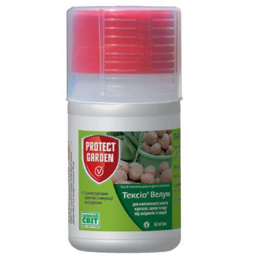 Тексіо Велум - поєднує в собі надзвичайно ефективний захист картоплі, овочів, саду від шкідників та хвороб одночасно з «антистресовим» ефектом стимуляції рослин. Це препарат для обробки бульб картоплі перед садінням та замочування кореневої системи овочевих культур, що запобігає розповсюдженню таких шкідників як колорадський жук, дротяники, несправжні дротяники, личинки хрущів, цикадки, попелиці, трипси, молі, блішки. При цьому контроль над шкідниками здійснюється з самого початку вегетації та, як мінімум, до кінця цвітіння картоплі, а овочів – щонайменше 30 днів від часу замочування. Фунгіцидна дія препарату направлена на захист від ризоктоніозу сходів і врожаю при гарному додатковому ефекті проти різних видів парші та мокрих гнилей.