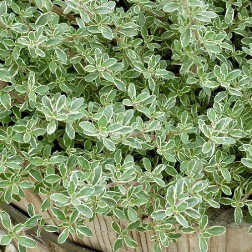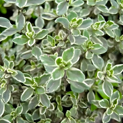 Чебрець лимонний Сільвер Квін — це багаторічна декоративна і пряна рослина, що відома своїм приємним лимонним ароматом та унікальними візуальними якостями. Як ґрунтопокривний сорт, цей чебрець утворює низькорослі кущі висотою 10-30 см, що ідеально підходять для створення ландшафтних композицій і ароматних грядок. Ширина рослини може досягати 80 см, забезпечуючи щільне покриття.