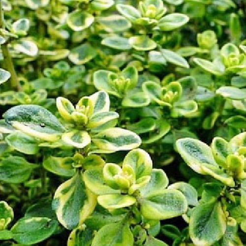 Тим'ян золотий "Містичний лимон" – ароматний декоративний, вічнозелений чагарник, відноситься до родини Губоцвіті. По одній із версій слово чебрець з латинської «thymos», означає хоробрість, яка символізує життєву енергію.Кущ низькорослий досягає висотою 10 см , і в діаметром 10 см. Листя світло-зелене з маленькою білою каймою. Цвіте блідо-рожевим квітами, червень- липень. Також має виражений аромат лимону. Даний саджанець любить сонячні місця, у затінених і напів затінених починає погано розвиватися, і не цвіте. Полив потрібен помірний, у дуже вологому місці може загинути. Віддає перевагу піщаним, кам’янистим грунтам з хорошим дренажем. Та до того ж стійкий до бідних грунтів, і витривалий до посухи. Кислотність повинна бути нейтральною. Не дуже зимостійкий. Вже старші кущі можна підстригати, і надавати форму рослині. Тим'ян золотий можна використовувати у кулінарії, додавати його в салати, до м’ясних і рибних страв,соусів. Також часто використовується у оформленні квітників, для декоративних грядок на подвір’ї, бордюрів, альпінаріях.