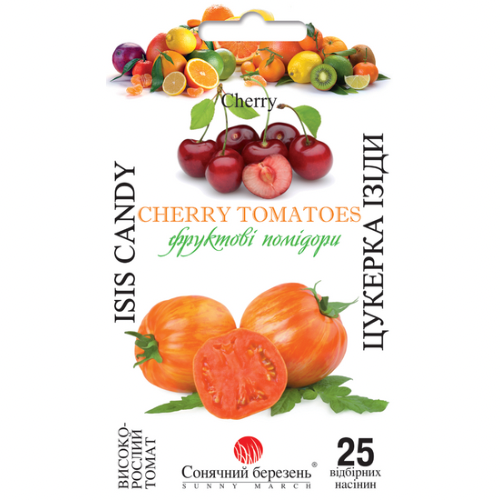 Ранньостиглий сорт виведений Джо Браткой, Нью-Джерсі, США. Прекрасні круглі плоди розміром один дюйм (2,5 см) можуть мати різні відтінки і візерунки від червоного до жовтого. М'якоть щільна і хрумка, зазвичай золотистого кольору з рожевими і червоними плямами. Багатий, солодкий, фруктовий смак, дуже інтенсивна насолода з нотками кислинки, звідси і назва «цукеркова». Міцна рослина з відмінним розвитком (понад 1,5 метра заввишки), добре облистяна. Ці улюблені «солодкі» ласощі як дітей, так і дорослих.