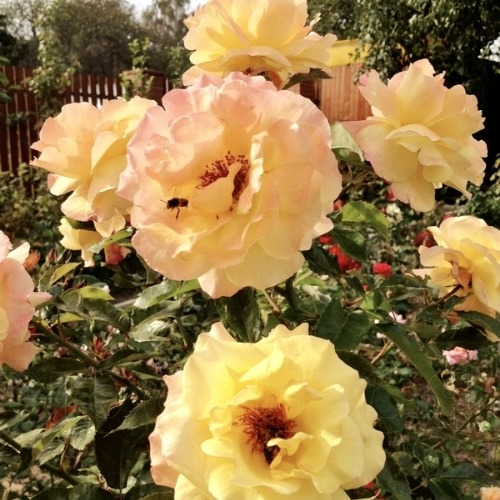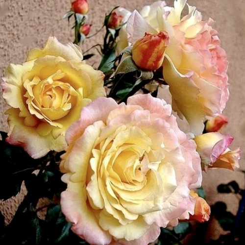 Троянда Катрін Лаборд — це витончений сорт, що привертає увагу своїми надзвичайно ніжними та великими квітками. Жовті пелюстки з червоним краєм створюють яскравий контраст, додаючи елегантності та вишуканості будь-якому саду. Діаметр квіток сягає 12-14 см, кожна квітка складається з 30-35 махрових пелюсток, які утворюють чашоподібну форму з високим центром.