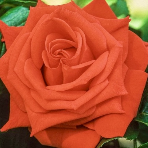 Бутони великі, келихоподібні, дуже щільні, складаються з 26–40 пелюсток. Розпускаючись, вони утворюють пишну квітку діаметром 10–12 см із насичено помаранчево-червоним кольором, який зберігає інтенсивність навіть під сонцем. Зворотний бік пелюсток має ніжний матово-білий відтінок, що додає глибини кольору. Навіть у повному розкритті серединка залишається схованою, зберігаючи класичну форму чайно-гібридної троянди.