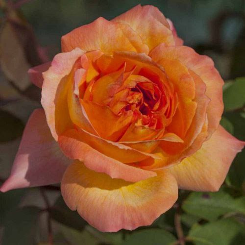 Чарівна троянда з великими густомахровими квітками з незвичайного оранжево-жовтого забарвлення, з червонуватим відтінком, є сильним ароматом з цитрусовими, екзотичними нотками. Rene Goscinny виведена відомою трояндовою фірмою Meilland, 2005. Кущ середньо-рослий, виростає до 80 см заввишки, лист насичено-зелений, з блиском, здоровий. Цвітіння багато протягом усього сезону. Квітки махрові, складаються з 25 пелюсток, класичної чашоподібної форми. Стійкість до чорної плямистості, до борошнистої роси висока. Морозостійкість, 6 кліматична зона.