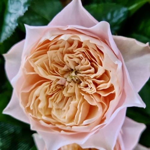 Квітки троянди Романтик Вувузела густомахрові, діаметром 8–10 см, із хвилястими, злегка гофрованими пелюстками, що створюють ефект розкритого півонії. Забарвлення змінюється впродовж цвітіння — від персиково-рожевого до насичено лососевого, що додає кущу неповторного шарму. Аромат середньої інтенсивності, з ніжними фруктово-пряними нотами.