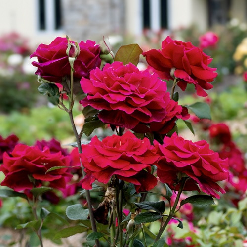 Темно-червона чайно-гібридна троянда Містер Лінкольн (Mr. Lincoln) ефектно виглядає як солітер, у групових посадках або в композиціях з іншими декоративними рослинами. Її великі витончені квітки також підходять для зрізки та створення тривалих букетів.