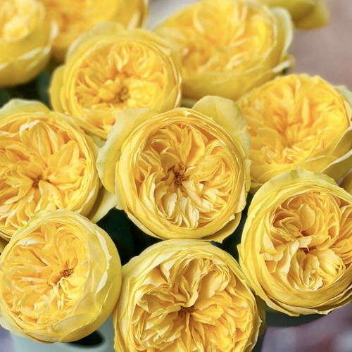 Троянда спрей Каталіна — це сорт, який відзначається пишним безперервним цвітінням із липня до жовтня. Її квіти щільні, півонієподібної форми, з насиченим жовтим відтінком, що надає саду яскравості та святкового настрою. Кожна квітка розкривається до діаметра 7–10 см, а на одному суцвітті формується від 5 до 10 бутонів, створюючи ефект рясного й декоративного цвітіння. Легкий фруктовий аромат робить присутність цієї троянди ще більш приємною та підкреслює її витонченість.