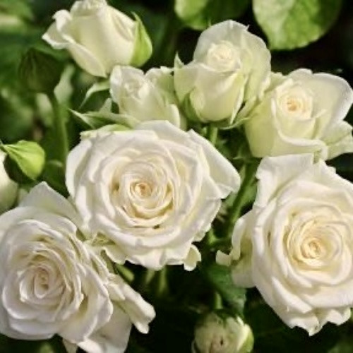 Троянда Вайт Леді (White Lady) – елегантний спрей-сорт з ніжним білосніжним забарвленням та рясним цвітінням. Кожен пагін утворює 12–18 густомахрових бутонів діаметром 5–6 см, форма яких нагадує класичну чайно-гібридну троянду. Пелюстки ніжні, поступово відкриваються, зберігаючи щільність квітки. Аромат легкий і ненав’язливий.