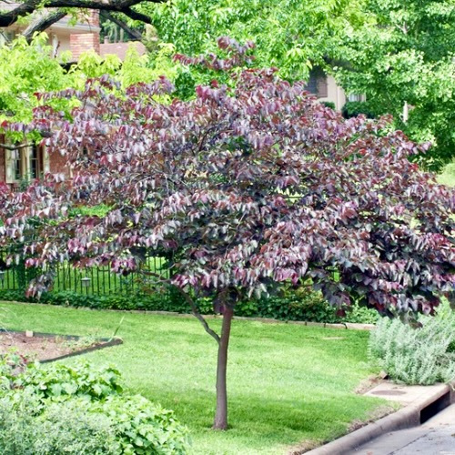 Церцис канадський Мерлот (Cercis canadensis "Merlot") – декоративне листопадне дерево або великий кущ висотою 5-6 м із компактною, округлою кроною. Листя серцеподібне, глянсове, темно-фіолетове, яке до кінця літа може частково зеленіти, а восени набуває червоних і жовтих відтінків. Навесні, ще до розпускання листя, дерево вкривається рясним цвітінням – пурпурно-рожеві квіти зібрані у пучки, створюючи яскравий акцент у саду.