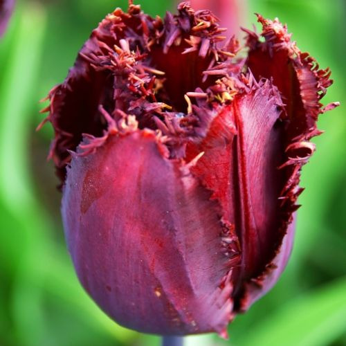Величний тюльпан із групи Бахромчатих під назвою "Black Jawel" полонить своєю красою. Цей тюльпан надзвичайно рідкісного, бордово-чорного кольору з жовтою, голчастою бахромою припаде до смаку лише справжнім поціновувачам та колекціонерам. Починає своє цвітіння наприкінці весни і радуватиме вас близько 2 тижнів. Тюльпани сорту Black Jawel допоможуть створити неповторний, вишуканий ландшафтний дизайн. Для зростання та активного цвітіння потрібен нейтральний або вапняно-кислий грунт.