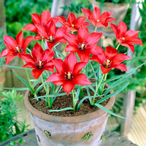 Невеликі червоні тюльпани ботанічні "Linifolia" підходять для створення клумб, бордюрних композицій, особливо ефектно виглядають у горщиках і вазонах. Їх висота всього 15 см, при цьому бутони щодо зростання досить великі і мають приємний аромат.