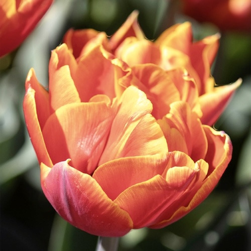 Тюльпан Bonanza — ефектний представник махрових пізньоквітучих сортів, який привертає увагу яскравими та великими квітками. Висота рослини досягає 45–60 см, що робить його гармонійним елементом будь-якої квіткової композиції. Квіти досягають 10–11 см в діаметрі і мають насичене червоно-жовте забарвлення, яке оживить будь-яку клумбу.