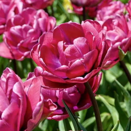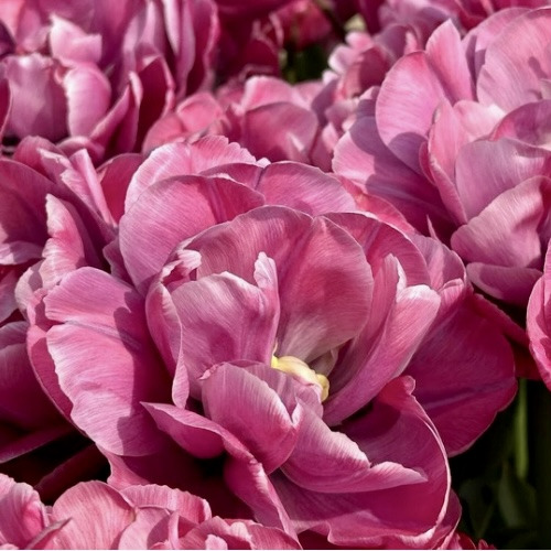 Тюльпан Rosy Diamond (Роузі Даймонд) – це справжня перлина весняного саду, яка заворожує своєю вишуканою красою та делікатними відтінками. Його пелюстки, що поєднують ніжний пурпурно-рожевий колір із білими краями, створюють враження, ніби квітка сяє під сонячним світлом. Це махровий сорт тюльпана з квітами, які нагадують пишні півонії, та відзначається надзвичайно тривалим періодом цвітіння. Rosy Diamond належить до групи подвійних тюльпанів, що надають саду особливої елегантності та граціозності.