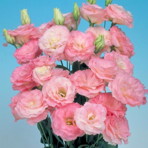 Еустома Mariachi найпопулярніший сорт еустом з великими (до 7 см в діаметрі), повними махровими бутонами і високими гілками. Квіти Маріарчі нагадують камелії. Красиві відтінки бутонів, які зацвітають в оптимальних умовах на 10-11 тиждень від моменту висадки. Сорт довгостебельний - до 100 см у висоту, добре розмножується.